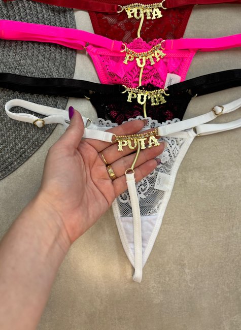 O destaque da peça fica por conta do aplique metálico dourado de alta qualidade, trazendo a palavra “PUTA” em acabamento polido, resistente e elegante. O adorno cria um visual ousado, moderno e provocante, perfeito para quem gosta de peças marcantes e de atitude.